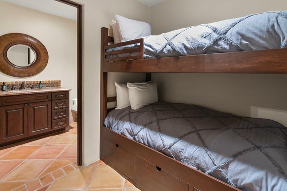Indulge in the best of vacation worlds at Hacienda Alegría. The Hacienda Beach Club has all of the amenities of a traditional resort, including golf course access, while maintaining the privacy of a condo. Each room opens up to a patio, minus the extra bunk room, and has an en-suite bathroom and HDTV. The unique experience granted by this condo is the private pool and hot tub. Feel at home in the full kitchen, relax by the pool with the BBQ, or head down to the beach club to enjoy one of the restaurants. Los Cabos is simply spectacular!