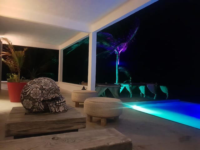Villa Isla Blanca is a beautiful 6 bedroom property with its own private sandy beach and easy access to the ocean for dipping your feet in, walking along the shore, or taking one of our Kayaks out. We are located about 30 mins from the center of Cancun; far from the busy city, but close enough to drive in for the day or to enjoy the night life. Away from the hustle and bustle, our space provides complete relaxation while you enjoy the peace and tranquility of beachfront living.